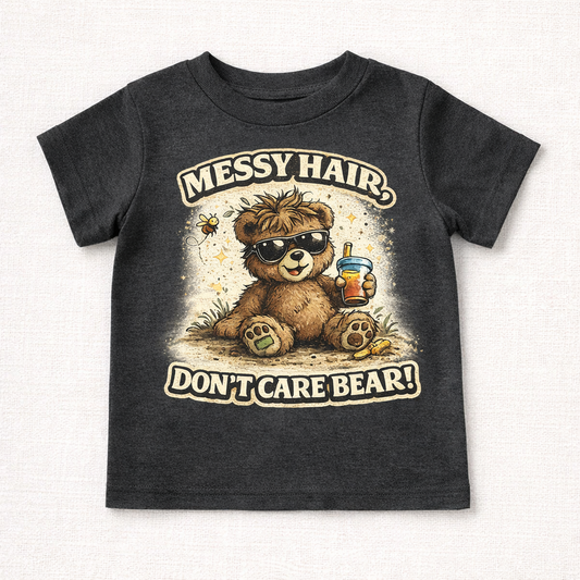 Messy Hair Don’t Care Bear Kids T-Shirt | Funny Toddler Shirt | Cute Bear Graphic Tee | Unisex Baby Toddler Youth Tee