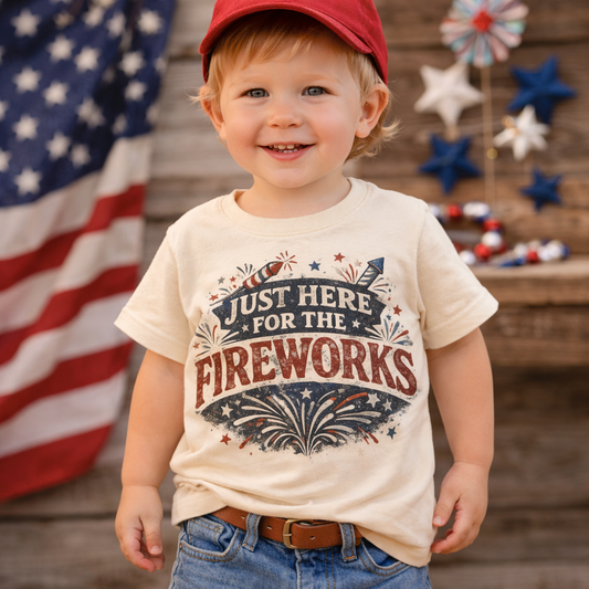 Just Here for the Fireworks Shirt, 4th of July Toddler Shirt, Patriotic Kids Shirt, Red White Blue Tee, Fourth of July Outfit, Baby Toddler Youth
