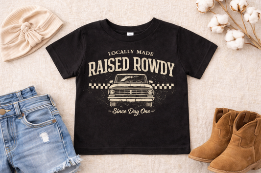 Locally Made Raised Rowdy Toddler Shirt, Country Toddler Tee, Western Kids Shirt, Farm Kid Shirt, Cowboy Toddler Outfit, Vintage Country Kids Clothes