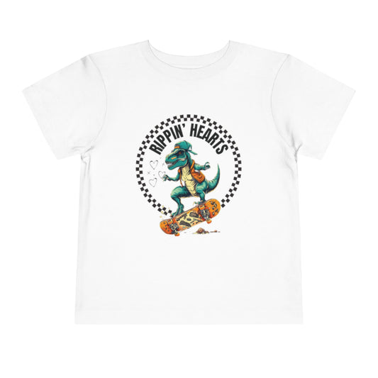 Rippin' Hearts - Fun Skateboarding Dinosaur Tee for Boys and Girls