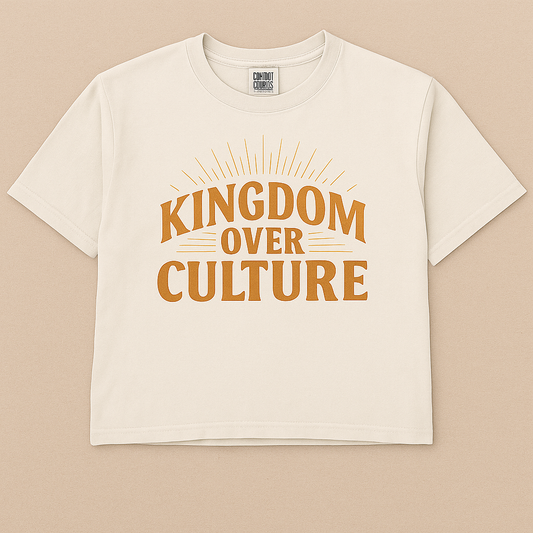 Kingdom Over Culture Shirt | Christian Graphic Tee | Faith Over Fear T-Shirt | Retro Sunrise Design | Comfort Colors Boxy Ivory Tee | Religious Boutique Shirt