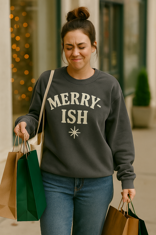 Merry-ish Sweatshirt | Comfort Colors Pepper Crewneck | Funny Christmas Sweater | Holiday Mom Life Sweatshirt | Cozy Boutique Graphic Pullover | Lil Crop Tops