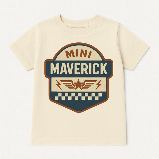 Mini Maverick Toddler Tee — Retro Racer Badge Kids Shirt - 3 Month - Youth XL