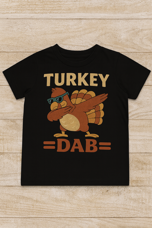 Turkey Dab Toddler Tee – Funny Thanksgiving Shirt for Kids | Bella Canvas Black Toddler T-Shirt | Cute Turkey Graphic | Fall Holiday Outfit | Lil’ Crop Tops