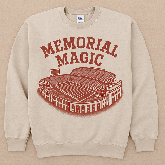 Vintage Memorial Magic Sweatshirt for Women | Retro Nebraska Football Crewneck | Distressed Memorial Stadium Graphic | Game Day Huskers Pullover