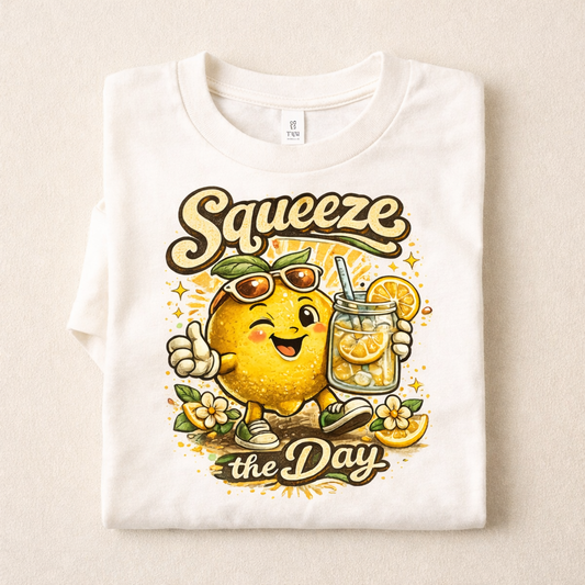 Squeeze the Day Kids Shirt – Cute Lemon Toddler Tee – Funny Summer Baby Shirt – Lemonade Graphic T Shirt – Baby Toddler Youth – Also in Natural