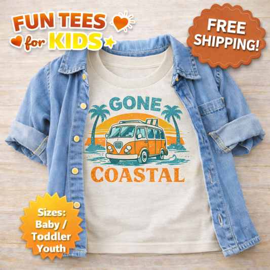 Gone Coastal Kids Shirt – Retro Beach Van Toddler Tee – Summer Vacation Baby Shirt – Surf Bus Graphic T Shirt – Baby Toddler Youth
