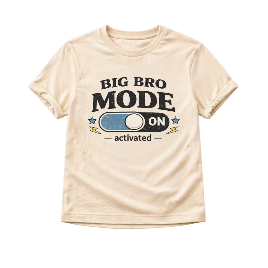 This Big Bro Mode Activated shirt for boys is a fun and playful big brother tee made for sibling reveals, pregnancy announcements, and special family moments. Featuring a cool toggle switch graphic with retro-inspired style, this boys shirt is perfect for proud big brothers who are ready to celebrate their new role in a cute, confident, and photo-ready way. 💙✨