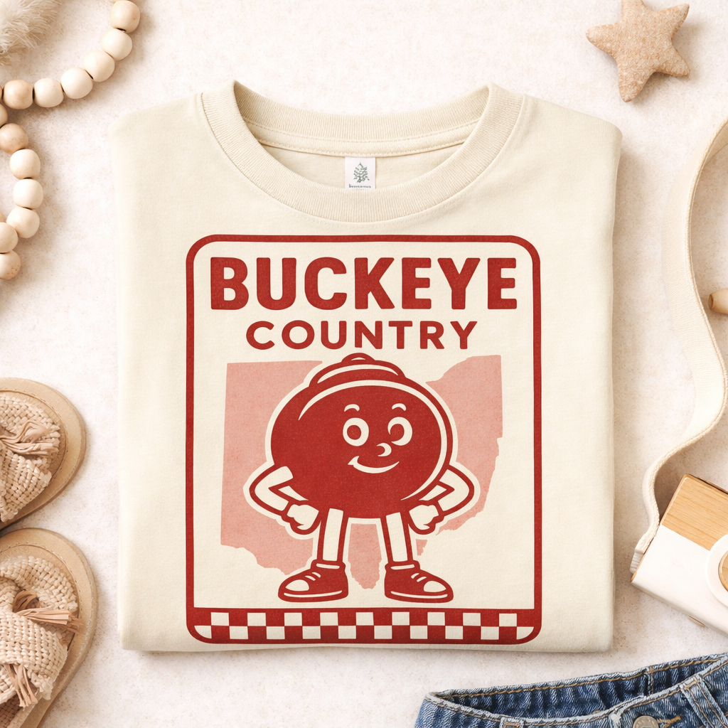 Bring big Buckeye pride to your littlest fan with this vintage-inspired Buckeye Country kids shirt. Designed with a retro checkered detail and classic Ohio graphic, this tee is perfect for game days, tailgates, and everyday wear.
