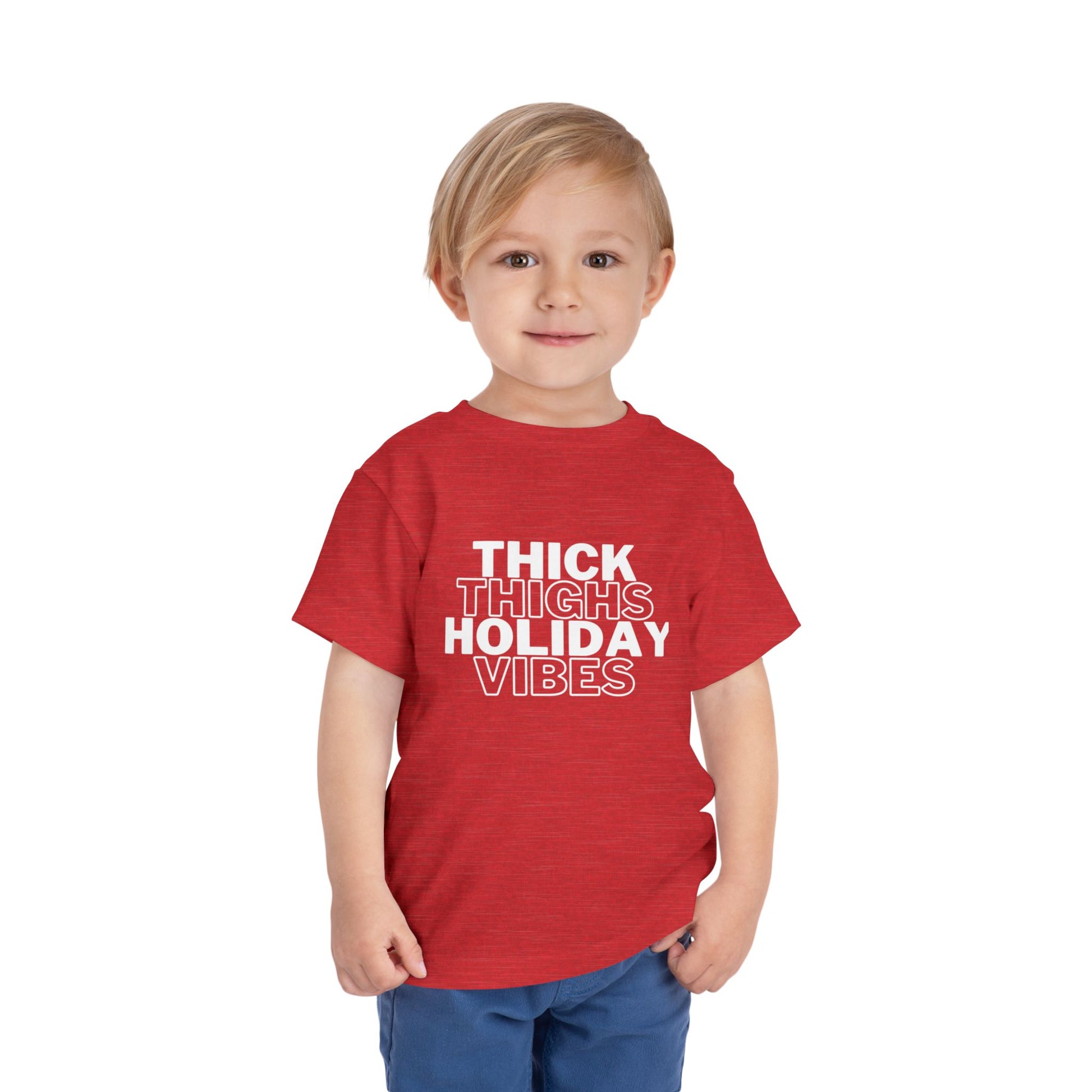 Thick Thighs Holiday Vibes Toddler Christmas Shirt | Funny Toddler Tee | Kids Christmas Outfit | Holiday Baby Shirt | Cute Christmas Toddler Tee