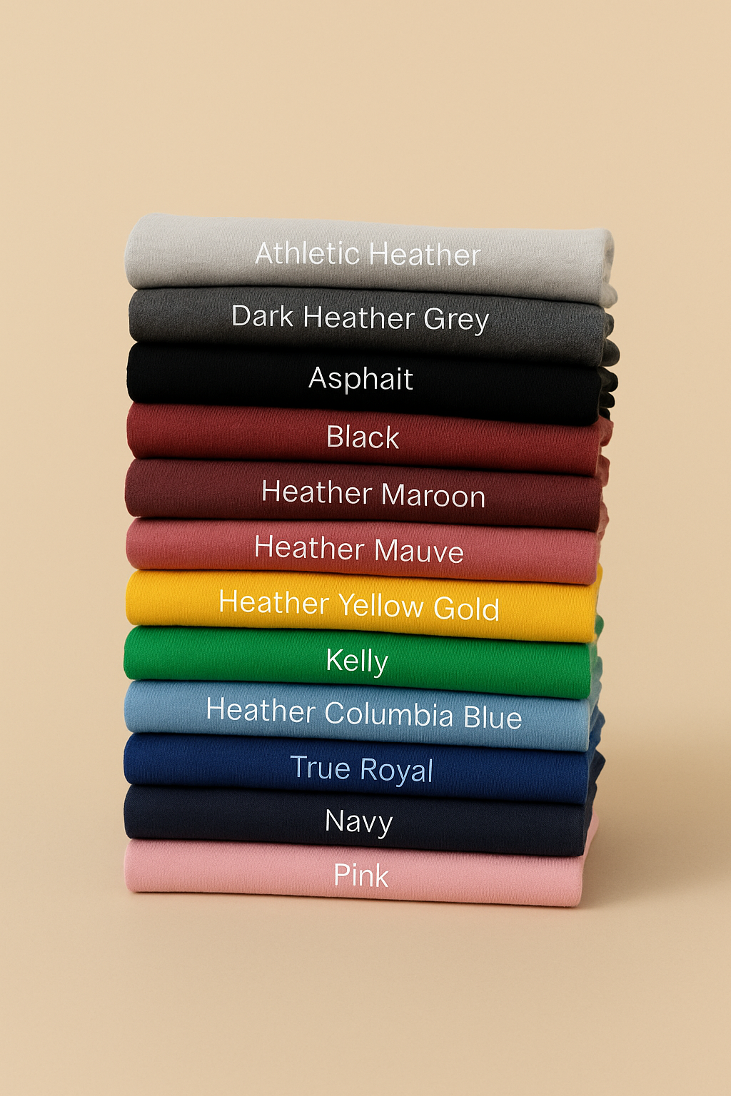 Available in multiple colors: Kelly, Heather Mauve, Athletic Heather, Black, Red, Navy, and more
